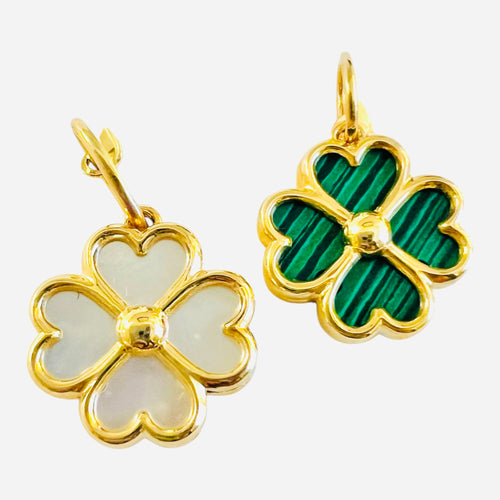 Small 14k Gold Clover Charm - Malachite and Mother-of-Pearl
