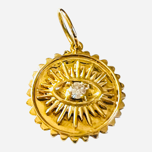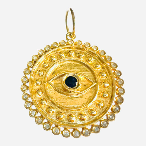 14k Gold & Diamond Sapphire Eye Pendant Charm