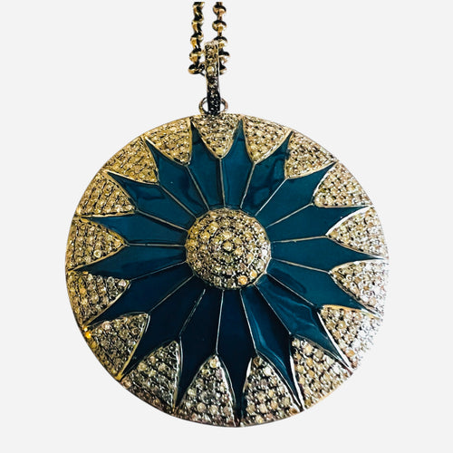Large Blue Enamel Diamond Pendant