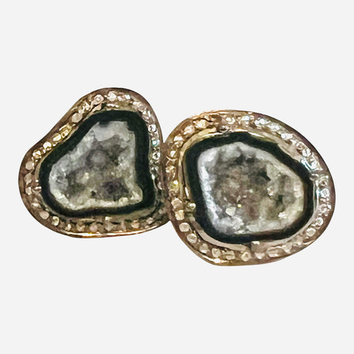 Oval Faceted Moonstone Diamond Earring