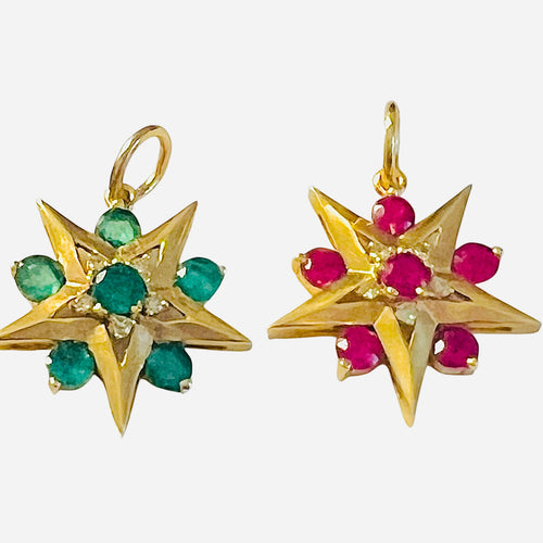 Emerald and Ruby Star 14k Gold Charms