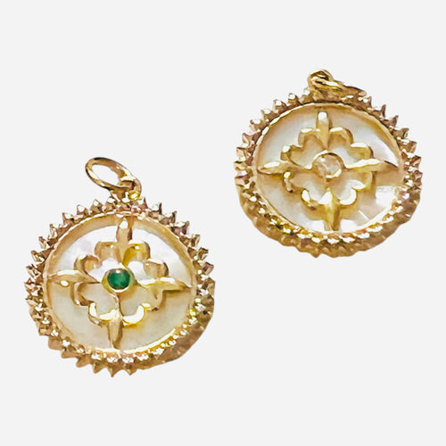 14k Gold & Diamond and Emerald Mother-of-Pearl Pendant Charms
