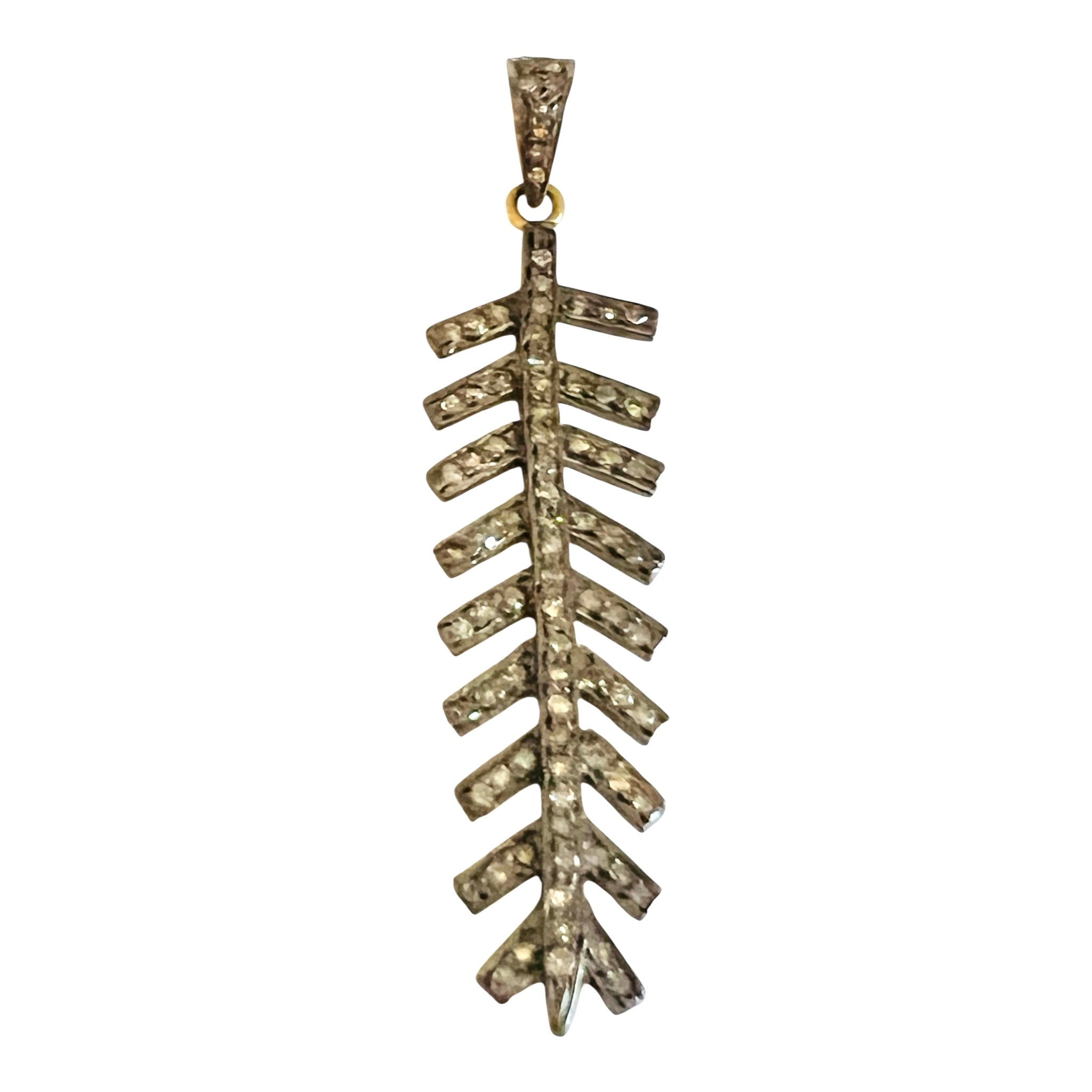 Tiny sparkling pave diamonds line this sterling leaf charm pendant measuring over 2" in length.