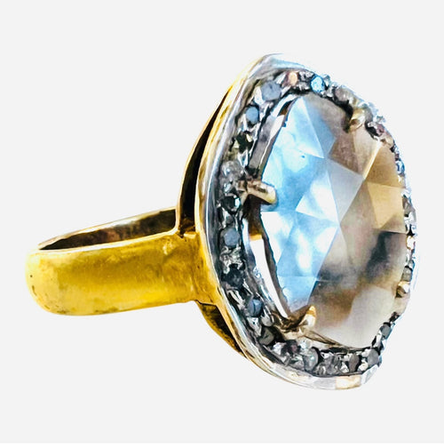 14k Gold Crystal & Diamond Teardrop Pendant Charm