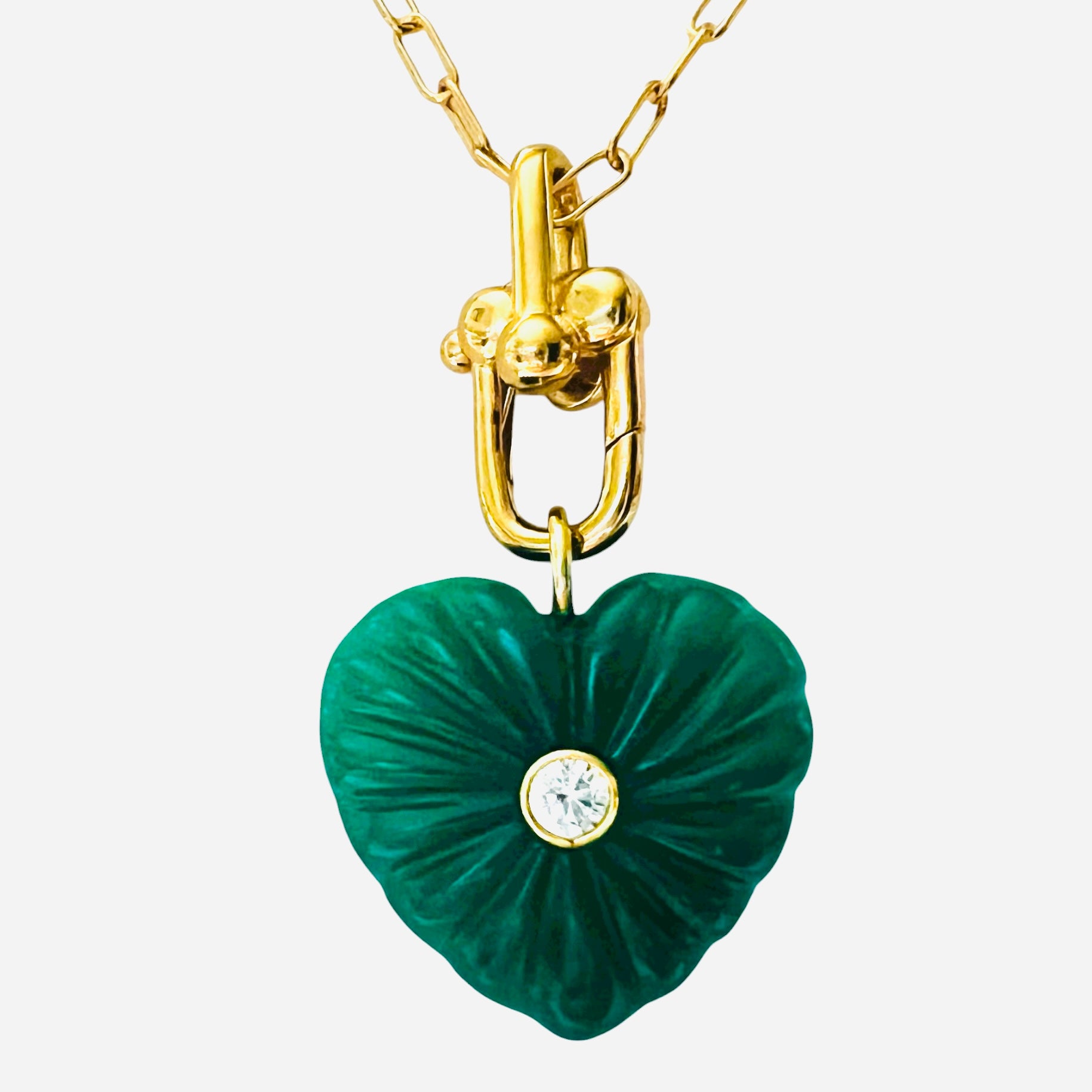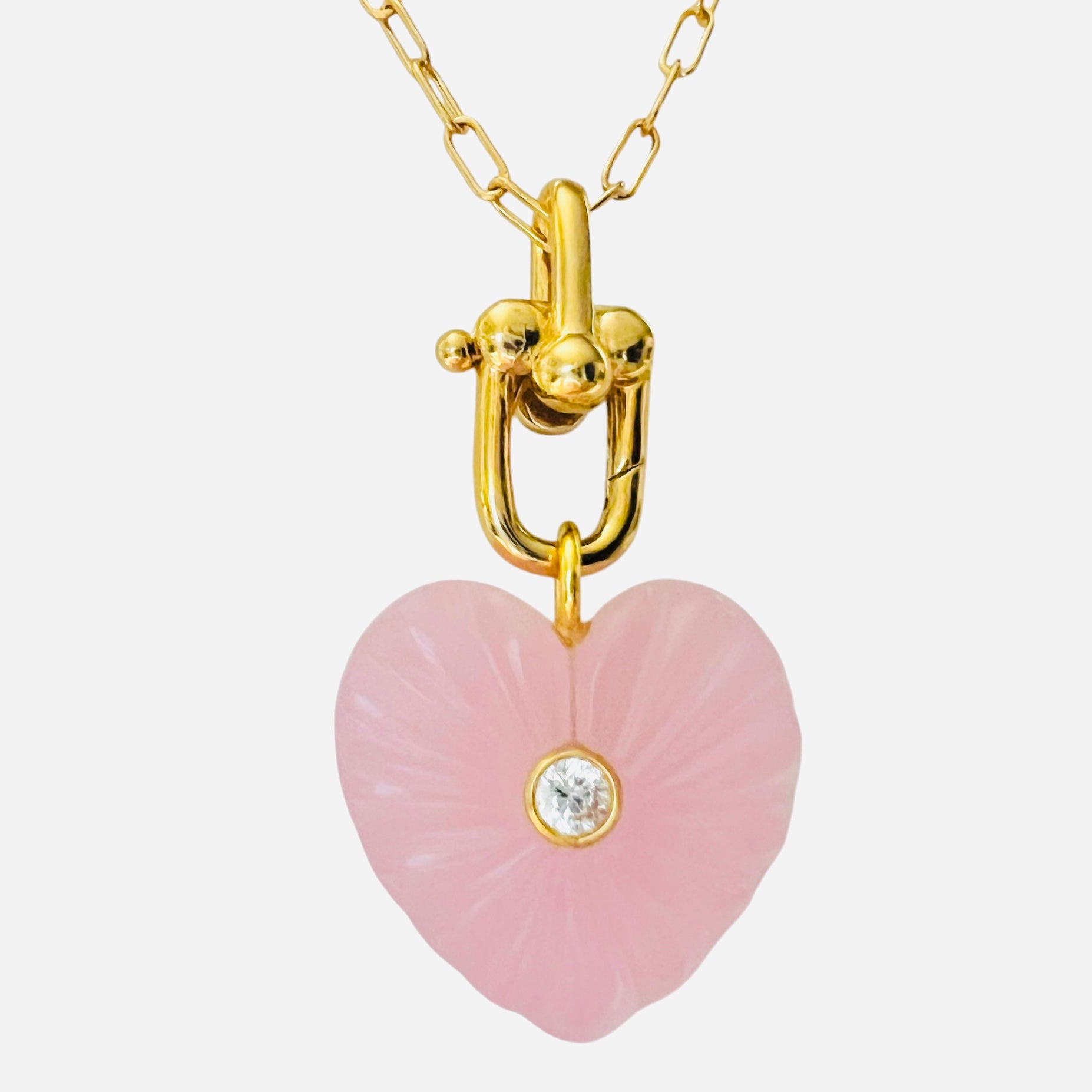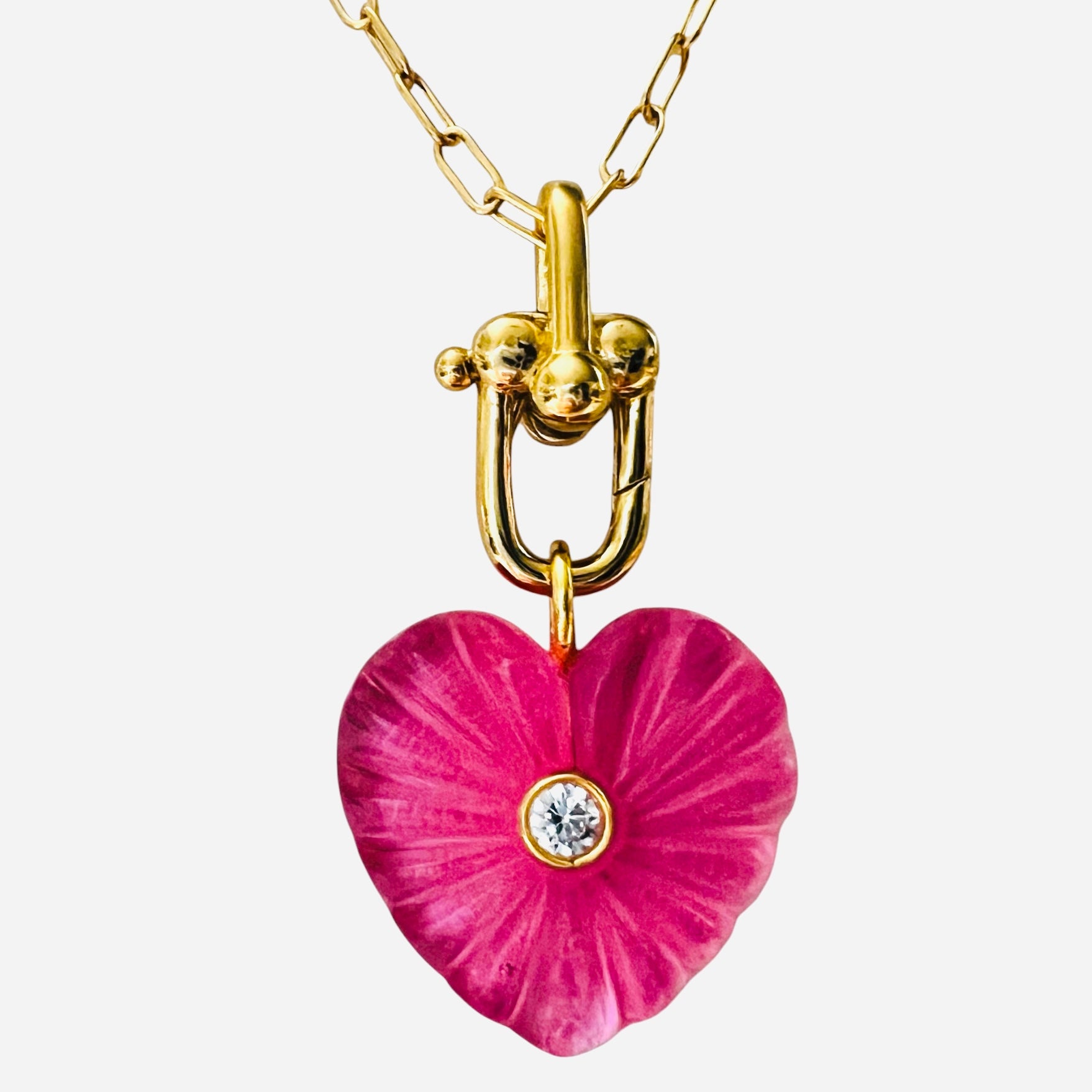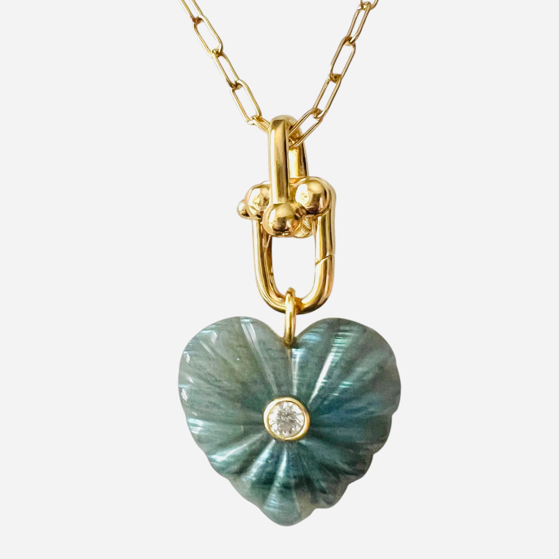 Fall in love with the joyful HEART Pendant Necklace! Don't we all need a little love right now? The gemstone pendant measures just shy of 1" in diameter with a tiny white topaz shimmering center. PLUS, you can add, at anytime ,more charms by simply opening the gold carabiner clip. The 14k gold filled paperclip chain is 17" long and held together with a 14k gold filled lobster clasp. We can make the chain any length for you as well as sell the charm separately upon special request.