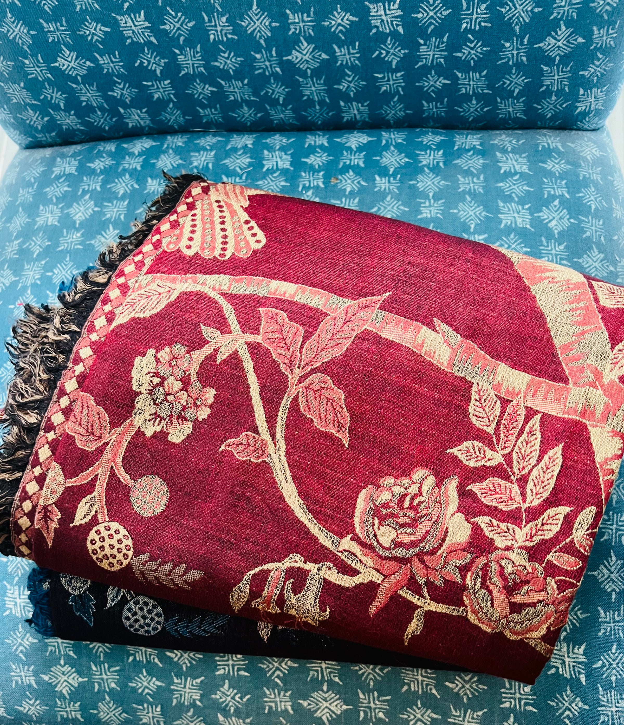 Extra Large Red Motif Silk/Pashmina Throw (India)